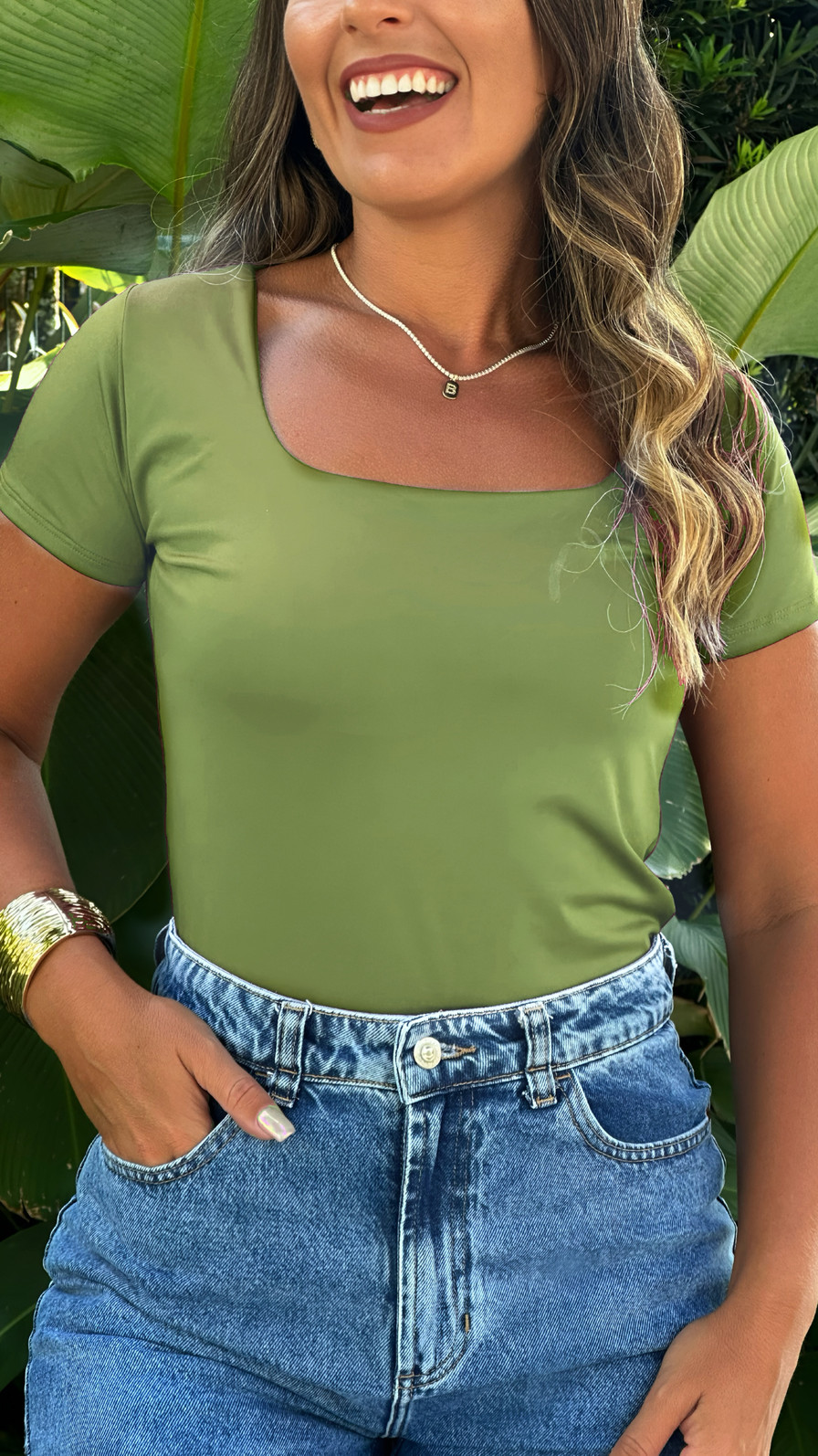 Mais uma das nossas básicas nada óbvias. Agora com decote quadrado e manguinhas em um comprimento super feminino, realçando a delicadeza do look.