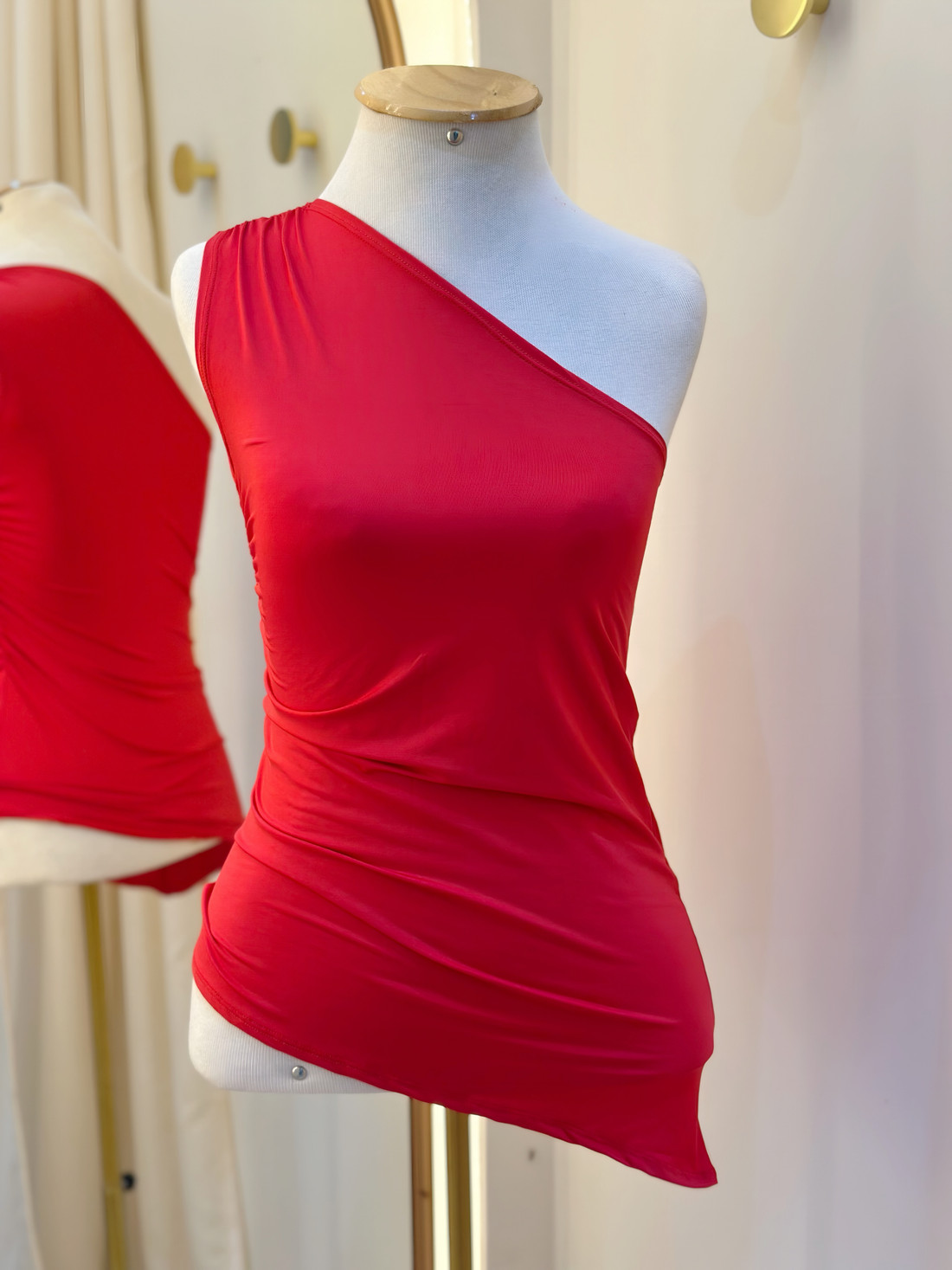 Com design assimétrico, ombro único e franzido estratégico, essa peça valoriza o corpo e traz um visual moderno e sofisticado, perfeita para looks do dia à noite.