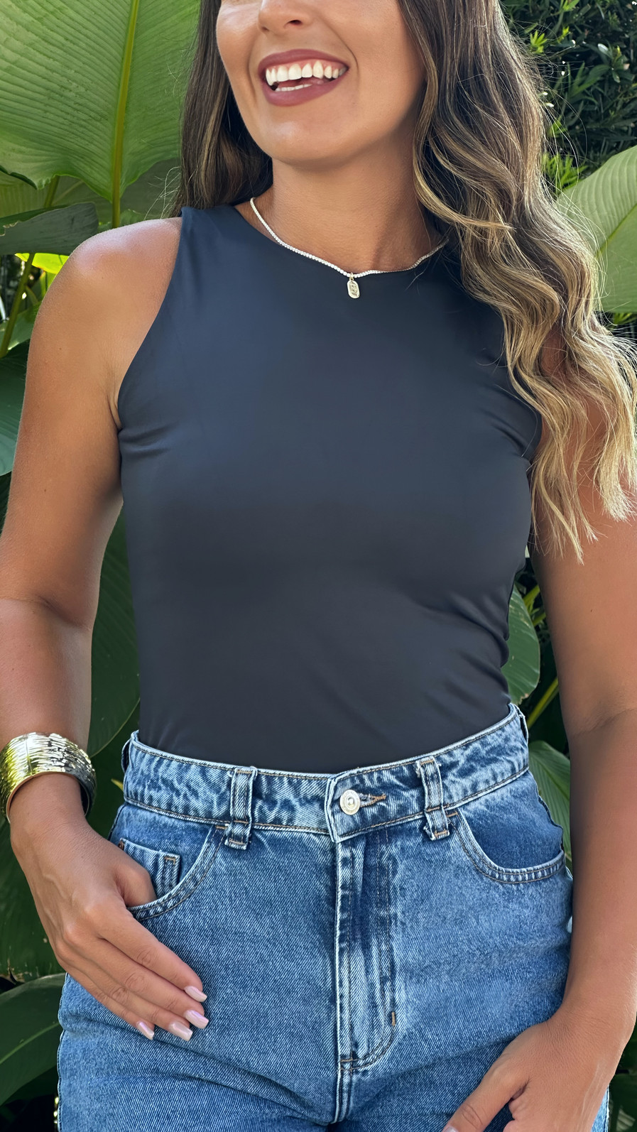 A nossa regata tem a gola mais fechadinha, trazendo um toque mais elegante.