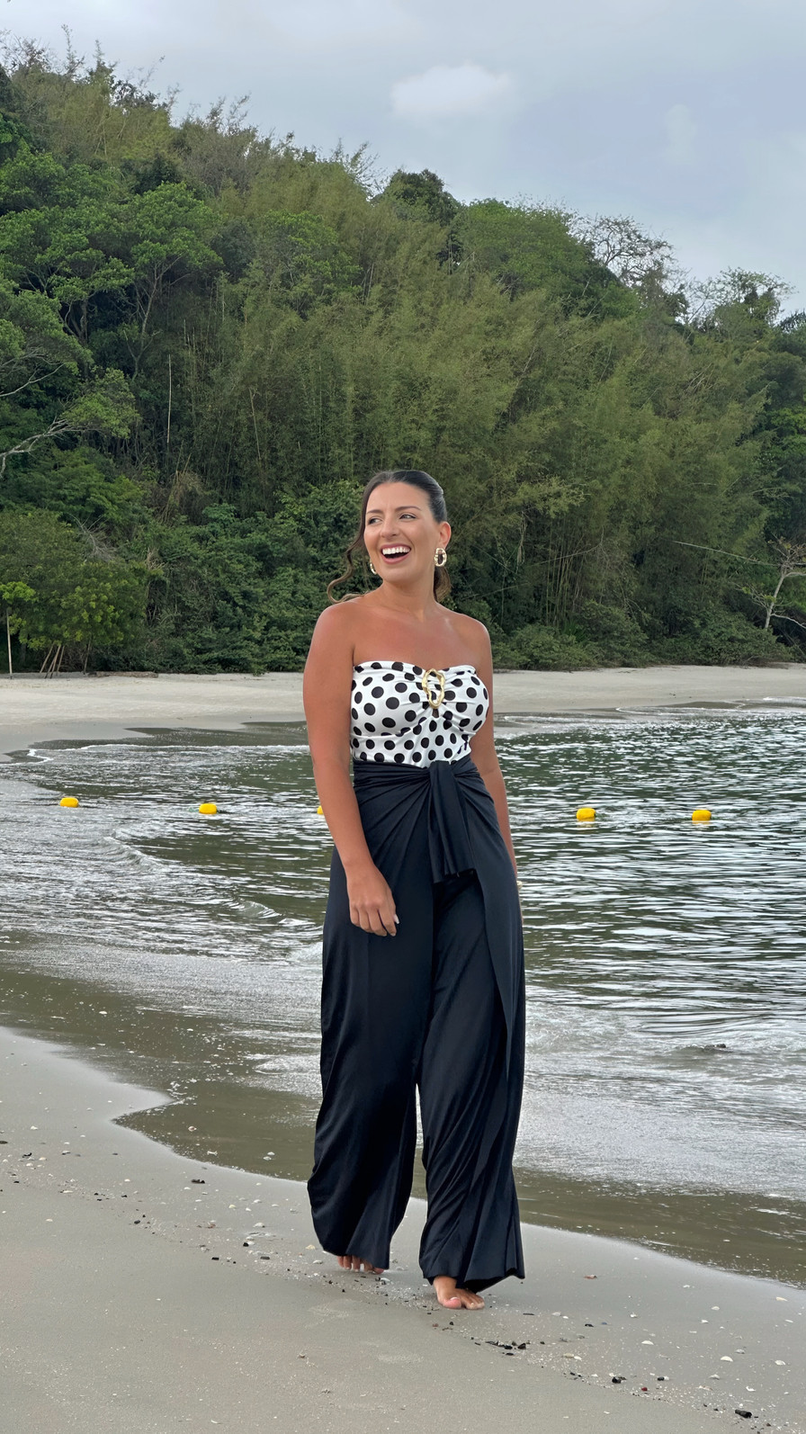 Agora o seu visual para a praia está completo com o nosso conjunto de calça macacão e maiô!
