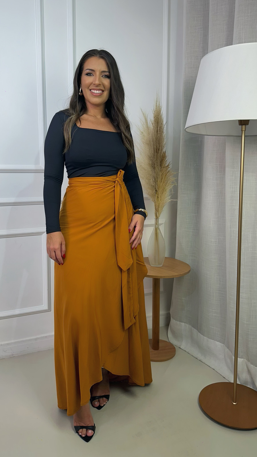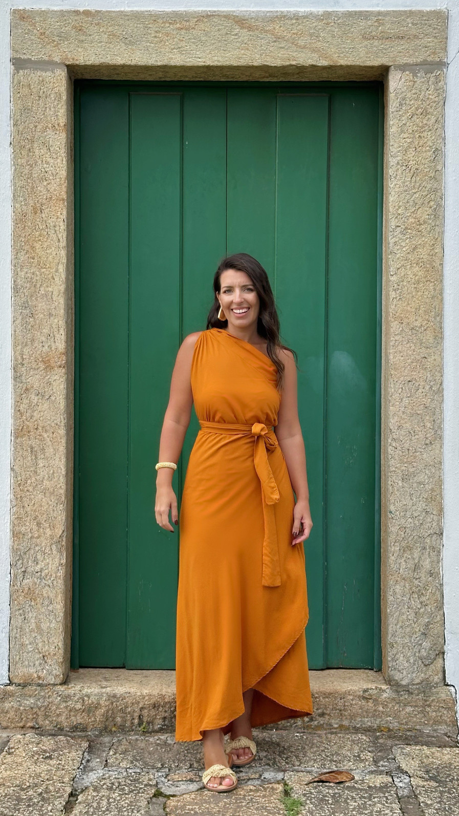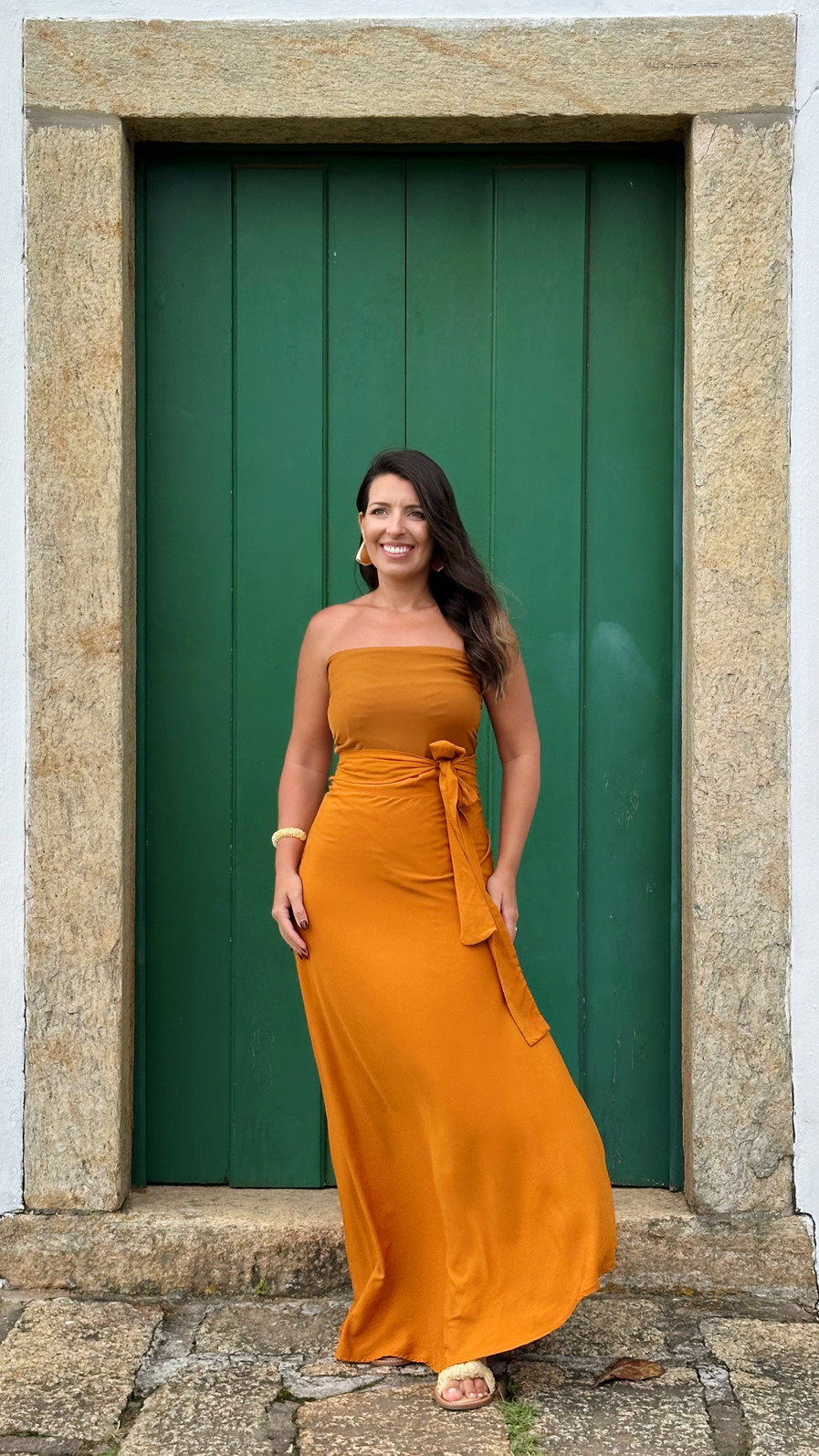 Uma peça que se transforma junto com o seu dia, seu estilo e o clima. Pode ser usada como saia longa elegante ou em diferentes modelos de vestido, se adaptando ao seu corpo e à sua rotina com praticidade e charme.