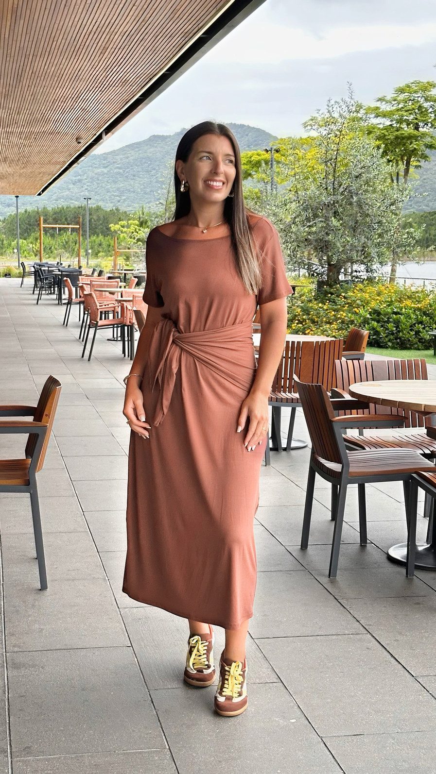 Confeccionado em viscolycra, uma malha deliciosa e super confortável, ele tem comprimento midi e um caimento leve que valoriza sem marcar.