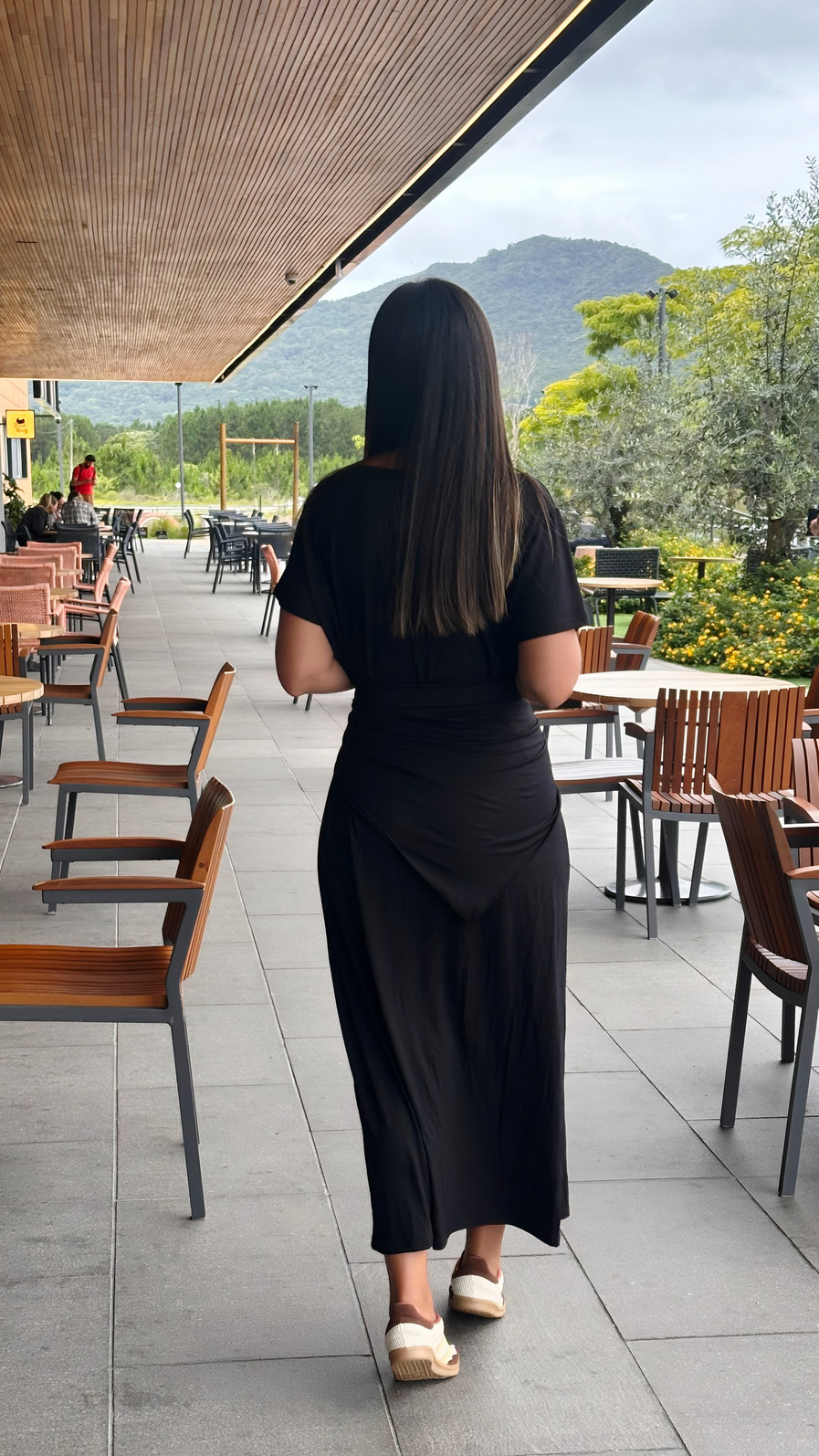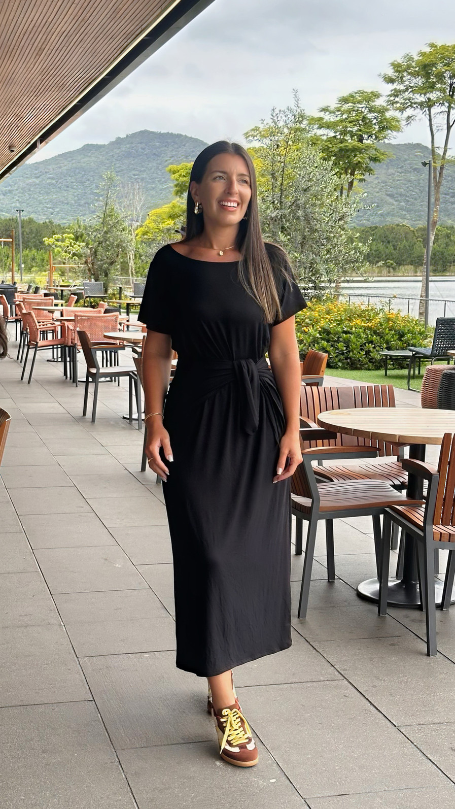 Confeccionado em viscolycra, uma malha deliciosa e super confortável, ele tem comprimento midi e um caimento leve que valoriza sem marcar.