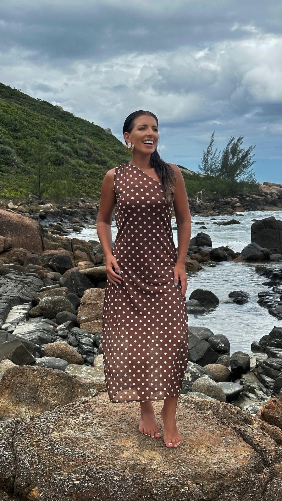 Perfeito para compor um look praieiro usando somente o vestido em tule, ele fica com uma leve transparência.